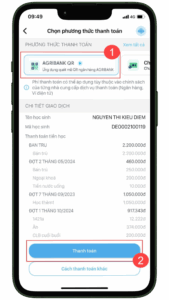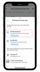 - Chọn hình thức thanh toán Mã QR AGRIBANK