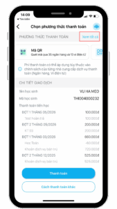 Phương thức 5: Thanh toán học phí qua mã định danh của học sinh