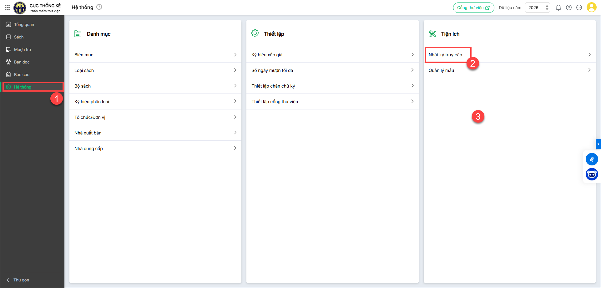 • Vào Hệ thống\Nhật ký truy cập để tìm kiếm lịch sử hoạt động.