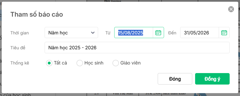 - Đối tượng: CBTV có thể thống kê danh sách bạn đọc tại chỗ theo học sinh hoặc giáo viên hoặc cả 2 tùy theo nhu cầu.