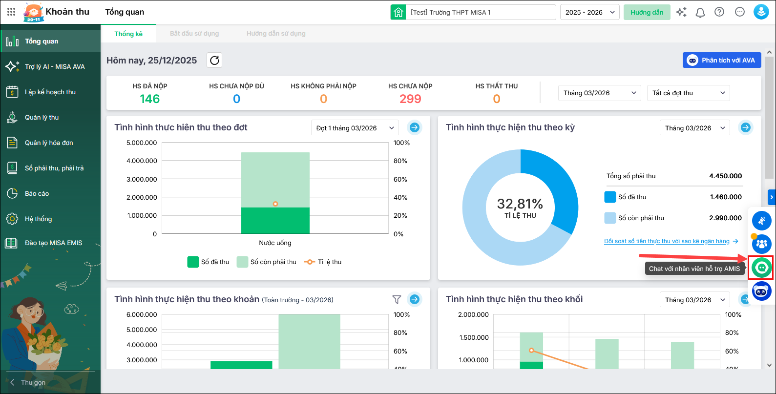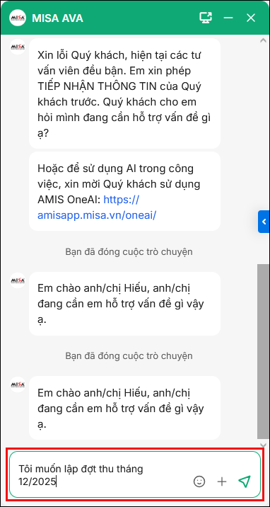 Thông qua Amis Support, khách hàng có thể trò chuyện ngay với Trợ lý số MISA AVA hoặc nhân viên tư vấn để được hỗ trợ kịp thời mọi vấn đề liên quan đến sử dụng phần mềm.
