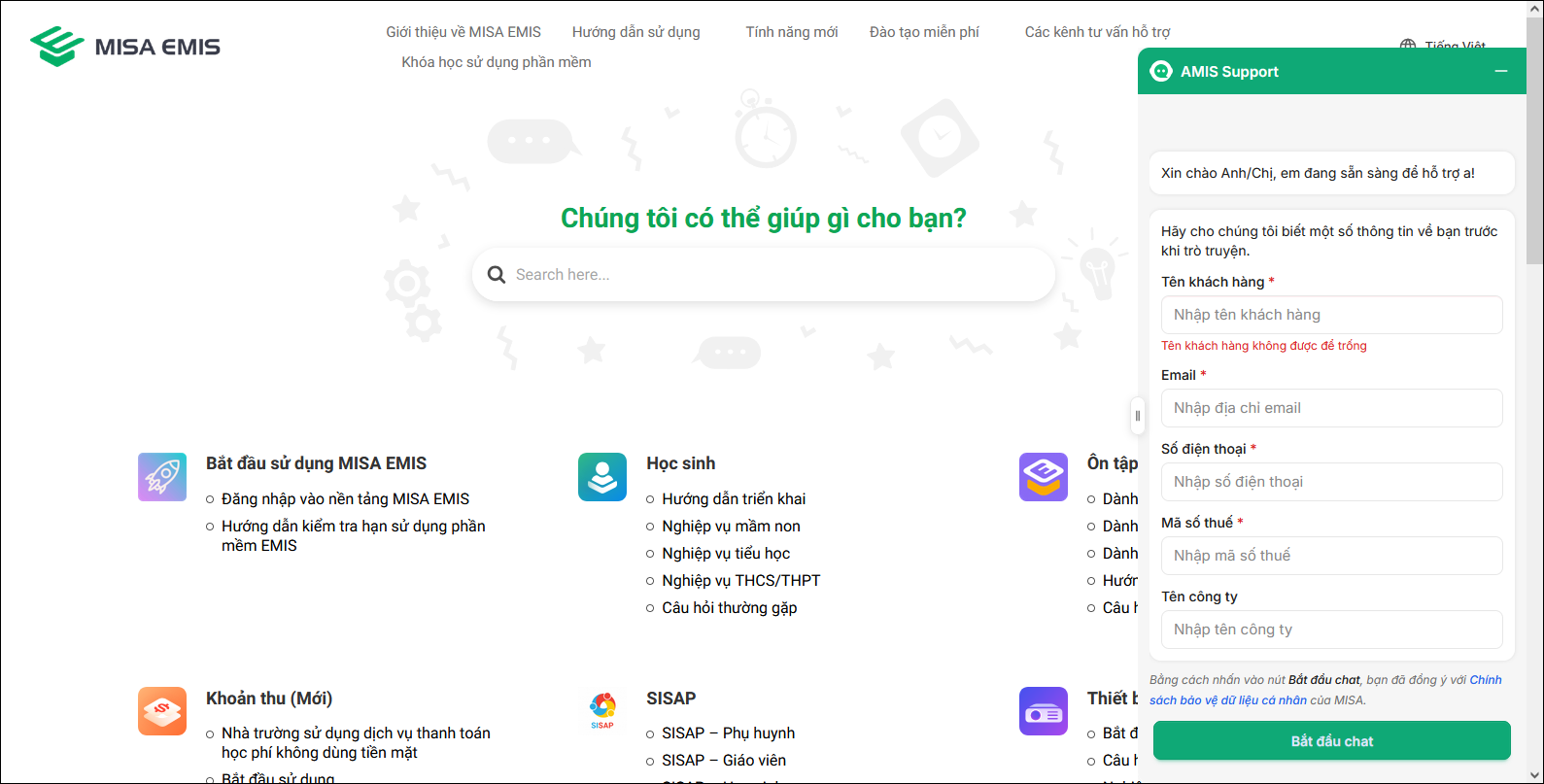 2.2 Cách 2: Sử dụng AMIS Support trên trang hỗ trợ