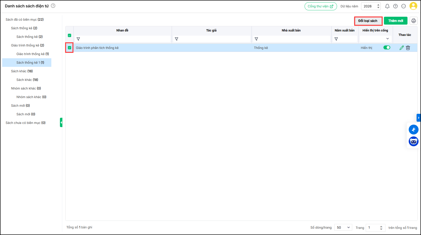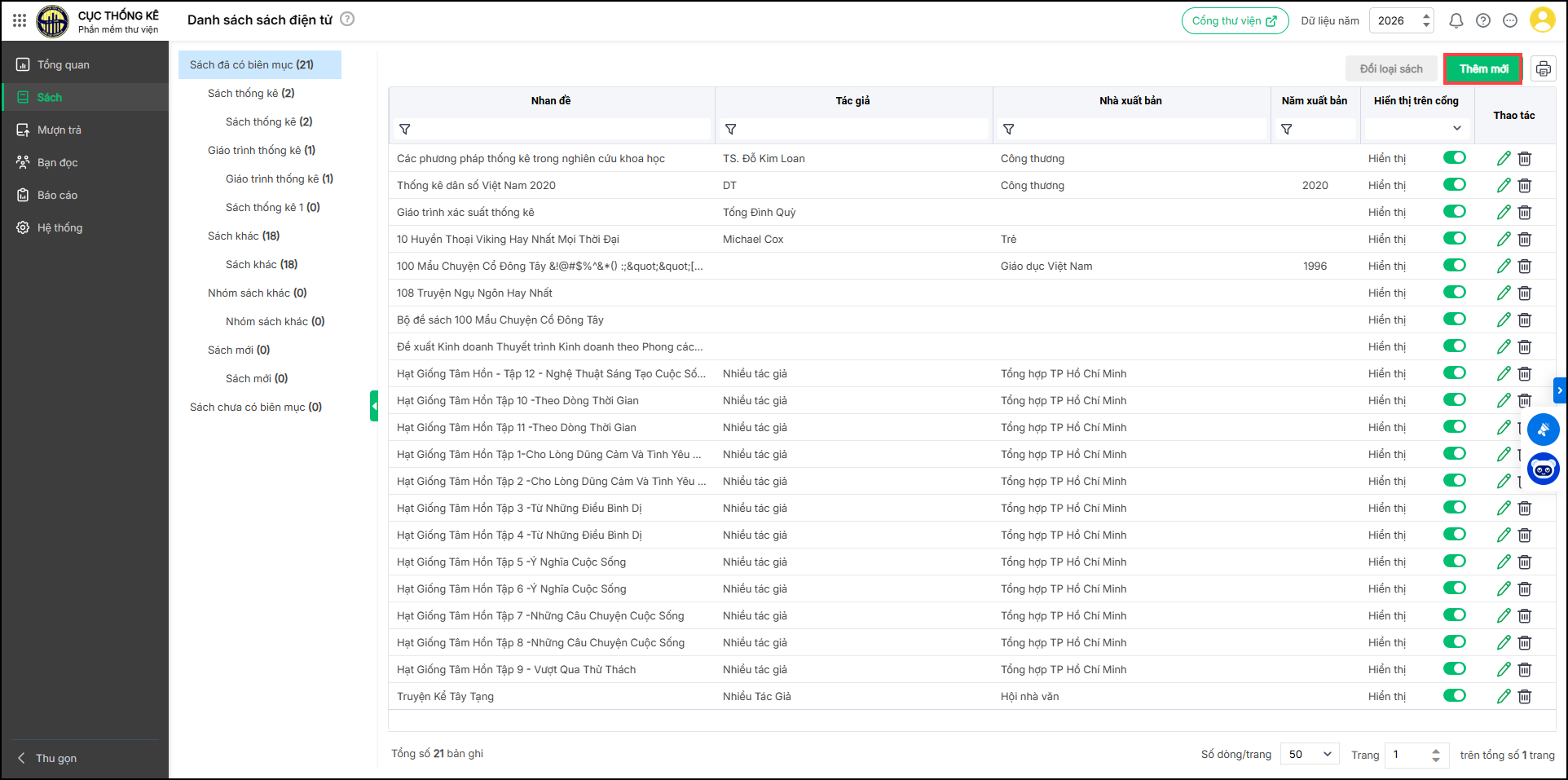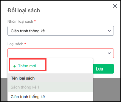 - Có thể nhấn Thêm mới loại sách