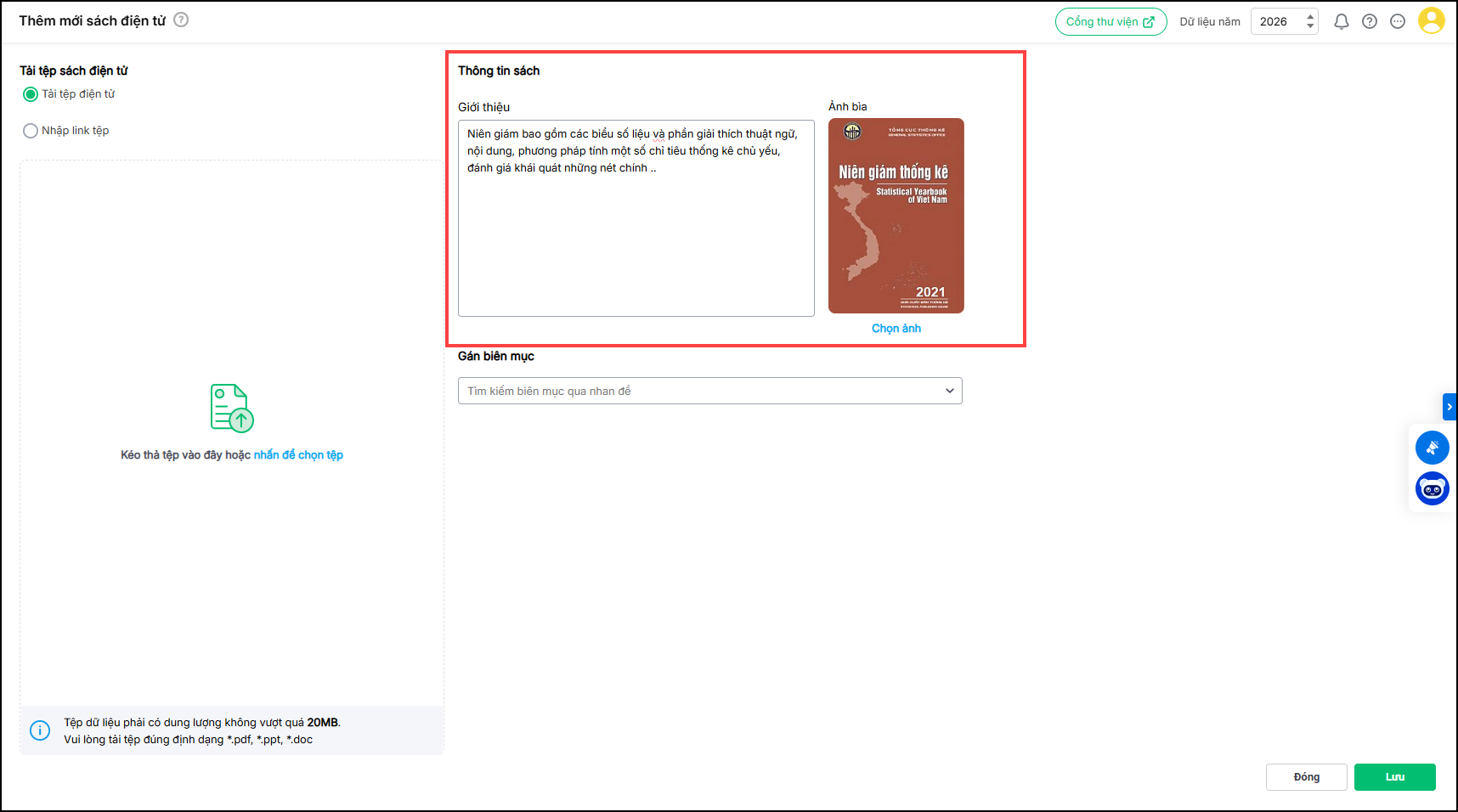 - Bấm Chọn ảnh để tải lên ảnh bìa sách