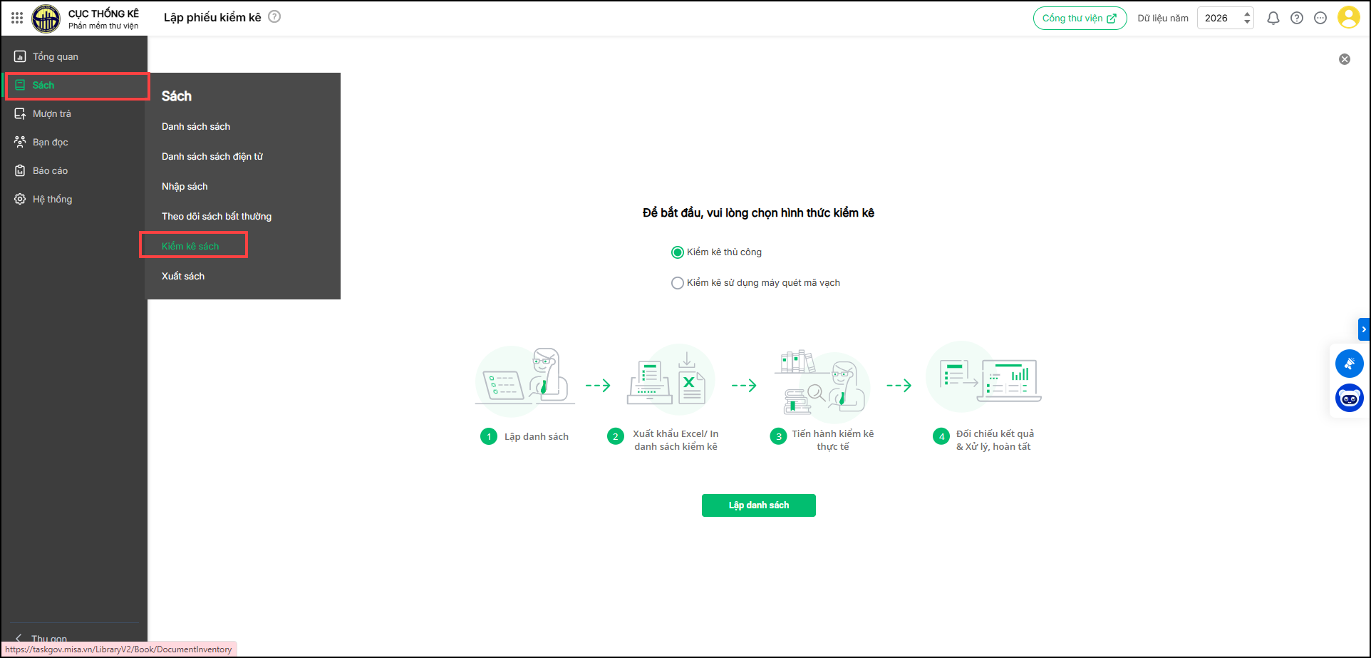 - Chọn Kiểm kê thủ công/Lập danh sách