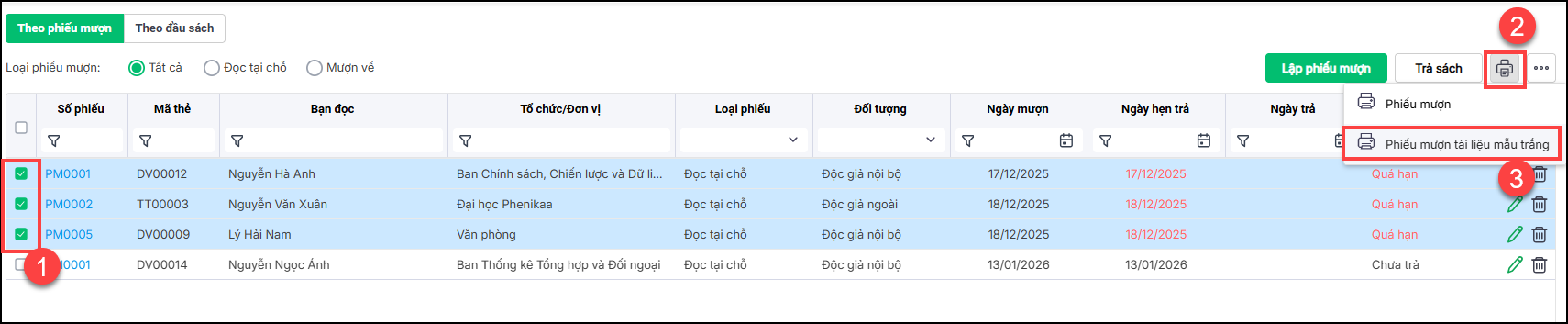 3. In phiếu mượn
