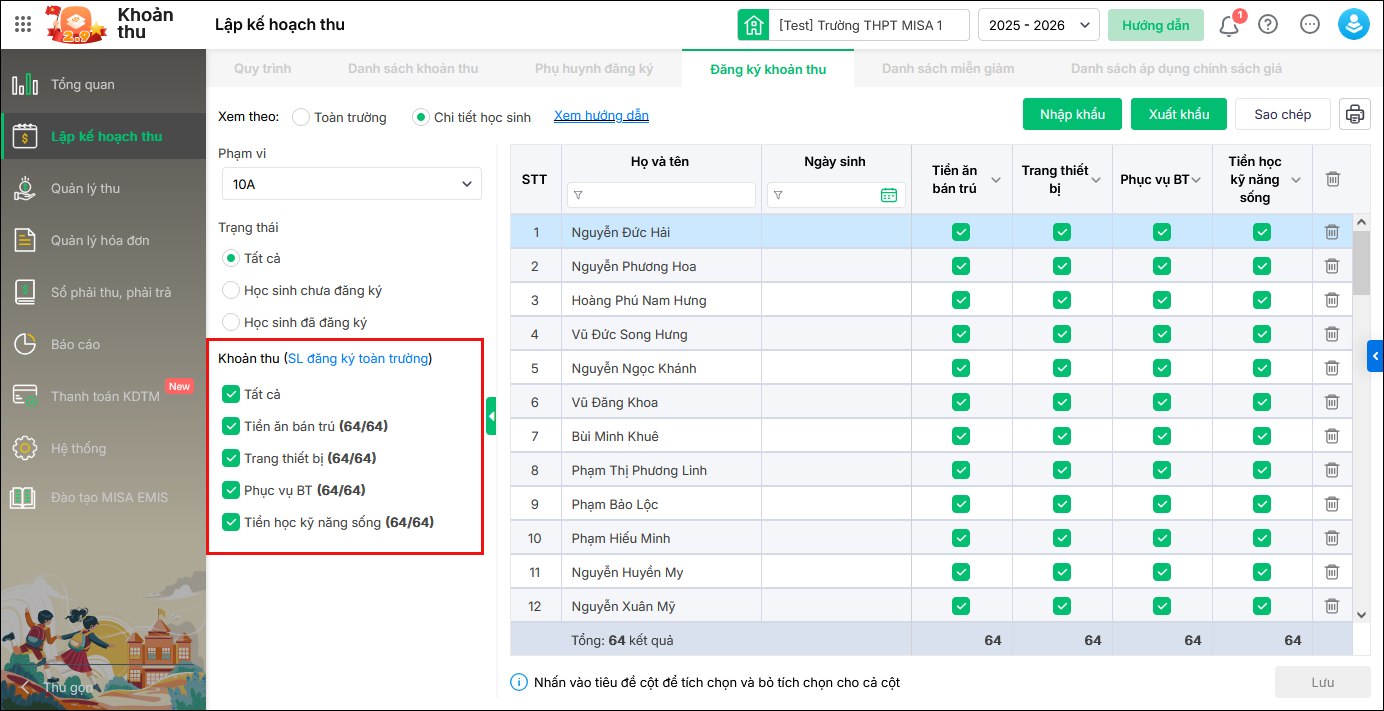 Xem hướng dẫn Đăng ký khoản thu chi tiết tại đây.