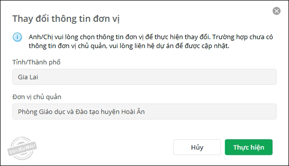 Bước 3: Chuyển đổi thông tin đơn vị trường học