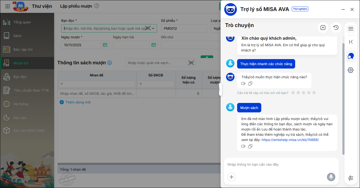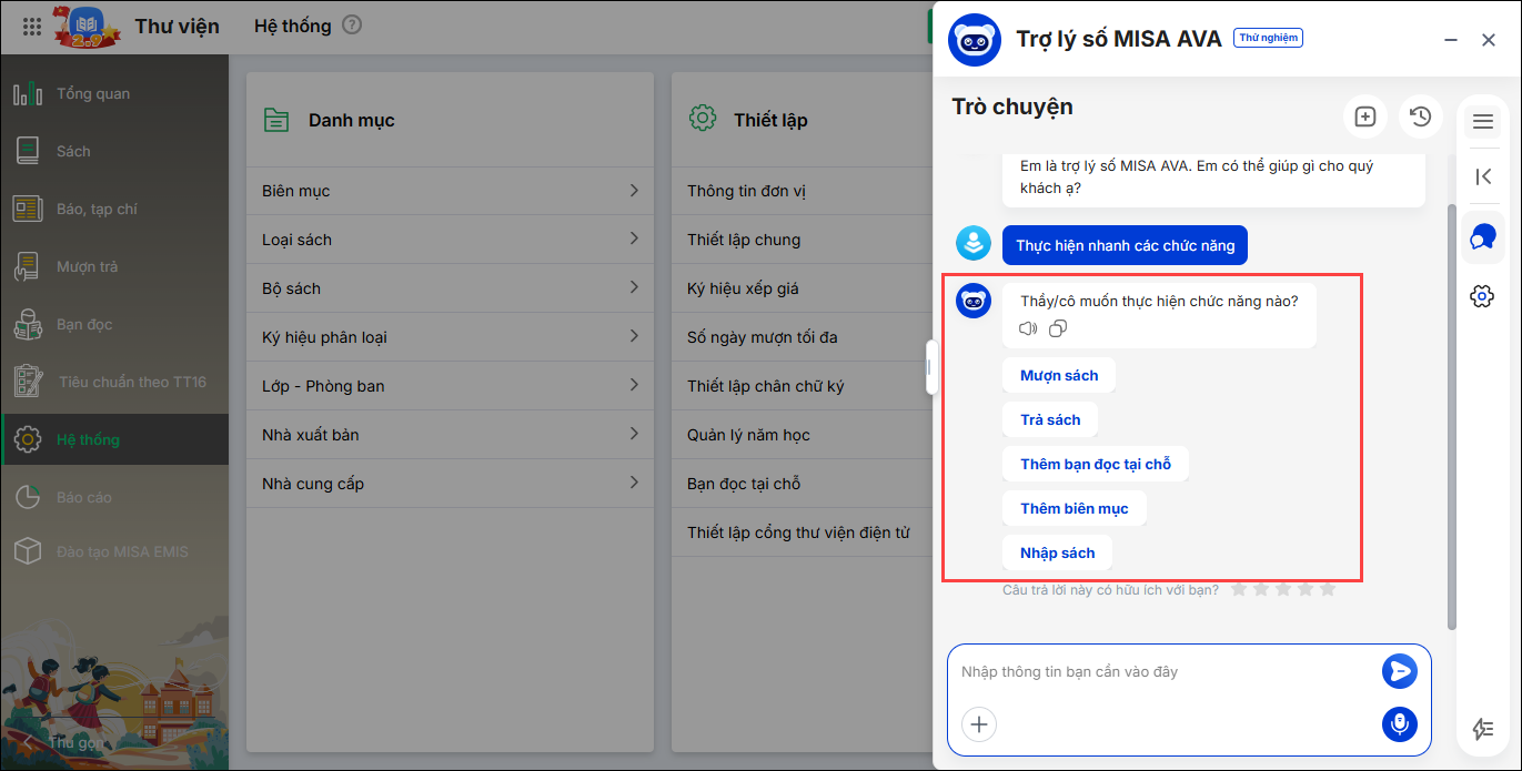 5. [EMIS Thư viện] Trợ lý số MISA AVA hướng dẫn thực hiện nhanh các chức năng phổ biến