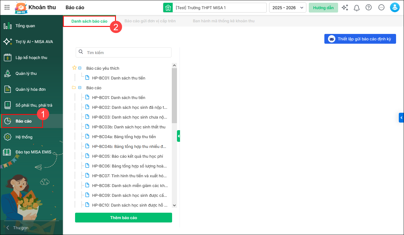 Bước 1: Vào Báo cáo\Danh sách báo cáo.