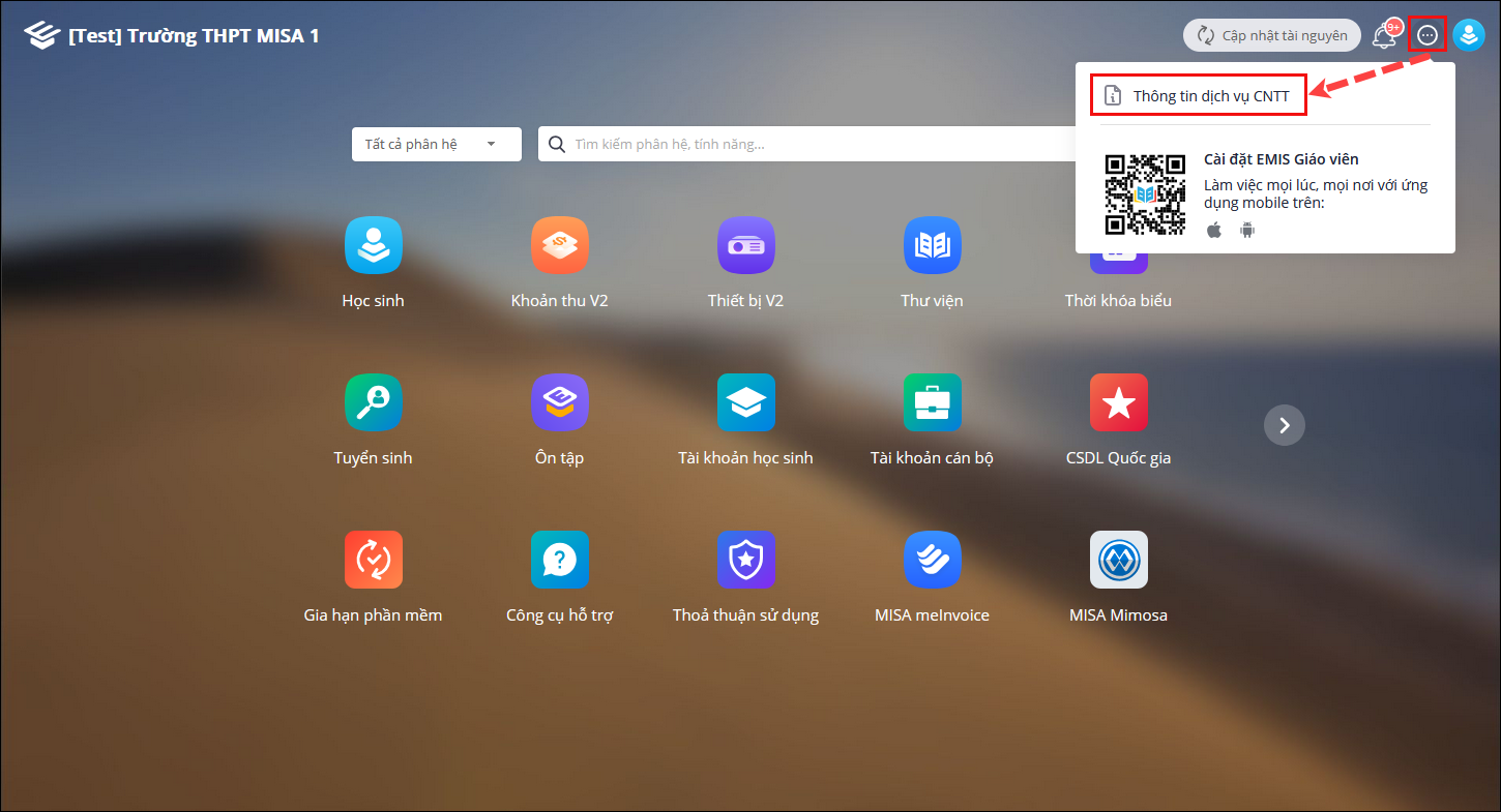 Hoặc, nhấn vào dấu 3 chấm, chọn Thông tin dịch vụ CNTT.