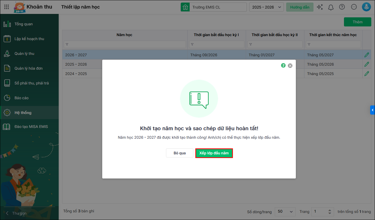 - Nhấn Bỏ qua: nếu danh sách học sinh trong năm học mới không có thay đổi gì.