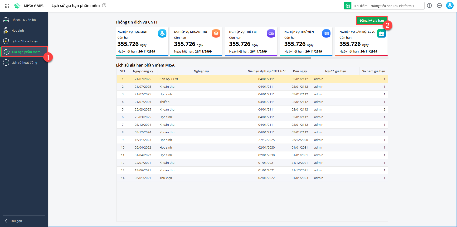- Vào Gia hạn phần mềm/Đăng ký gia hạn