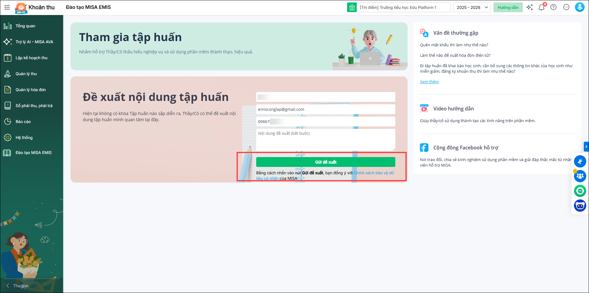 - Phần mềm bổ sung thông báo “Bằng cách nhấn vào nút Gửi đề xuất, bạn đã đồng ý với Chính sách bảo vệ quyền riêng tư của MISA”