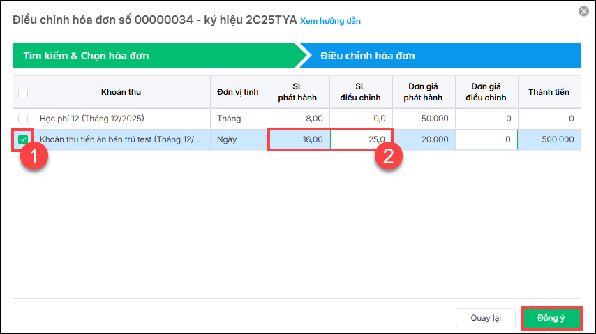 - Từ phiên bản R212: Kế toán có thể chỉnh sửa số lượng sử dụng sau khi xuất hóa đơn theo thực tế để ghi nhận hoàn trả đúng số lượng tồn của học sinh. Đảm bảo tuân thủ đúng theo quy định thuế.
