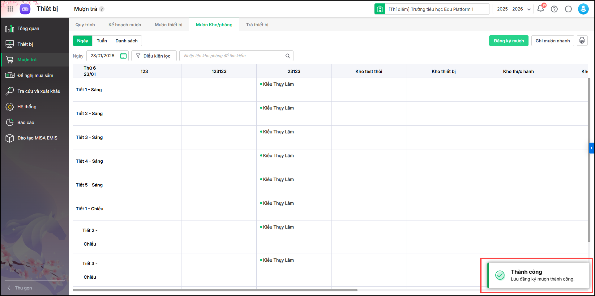 5. Nhấn Lưu để đăng ký mượn kèm thiết bị với kho/phòng.