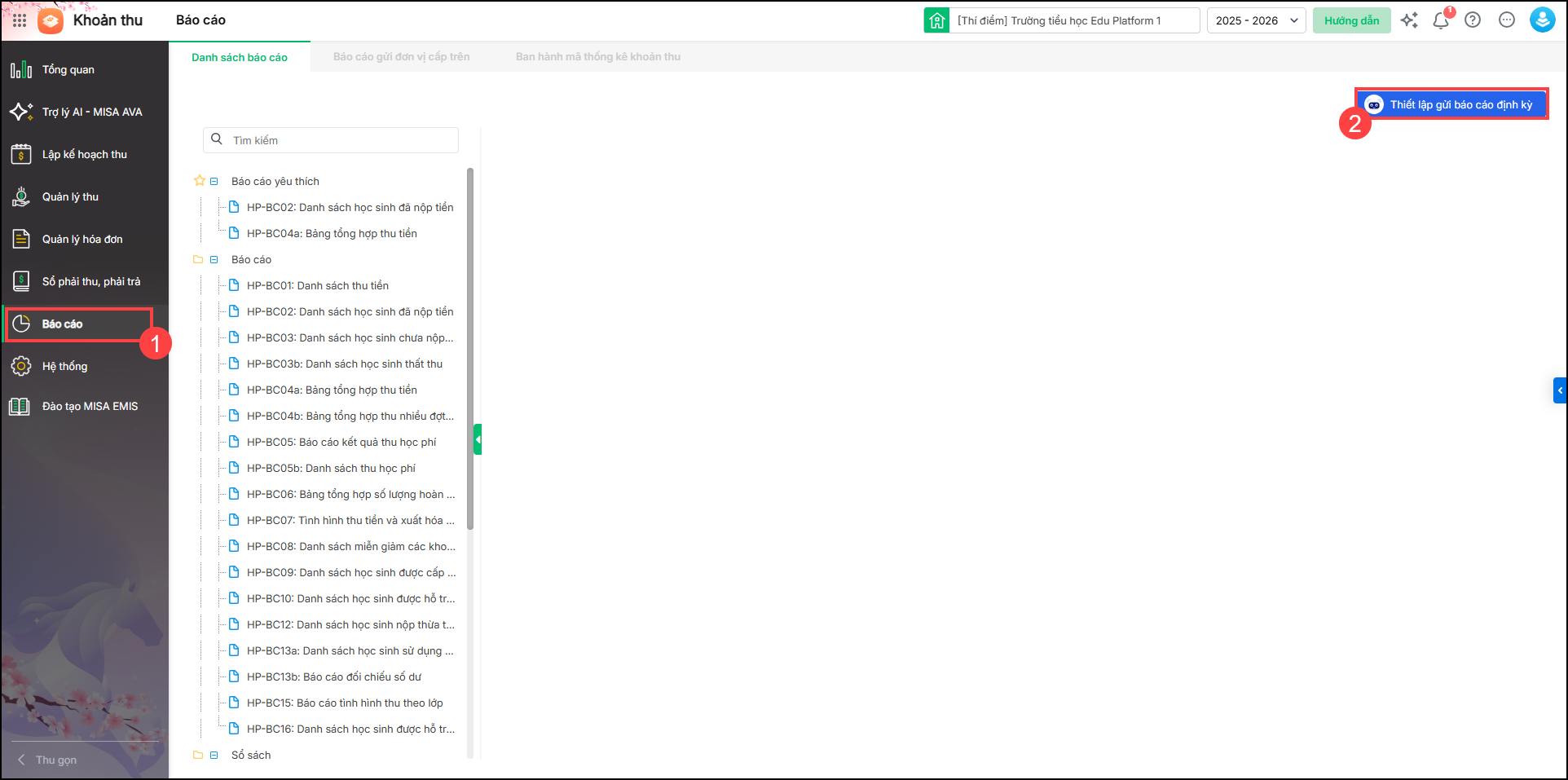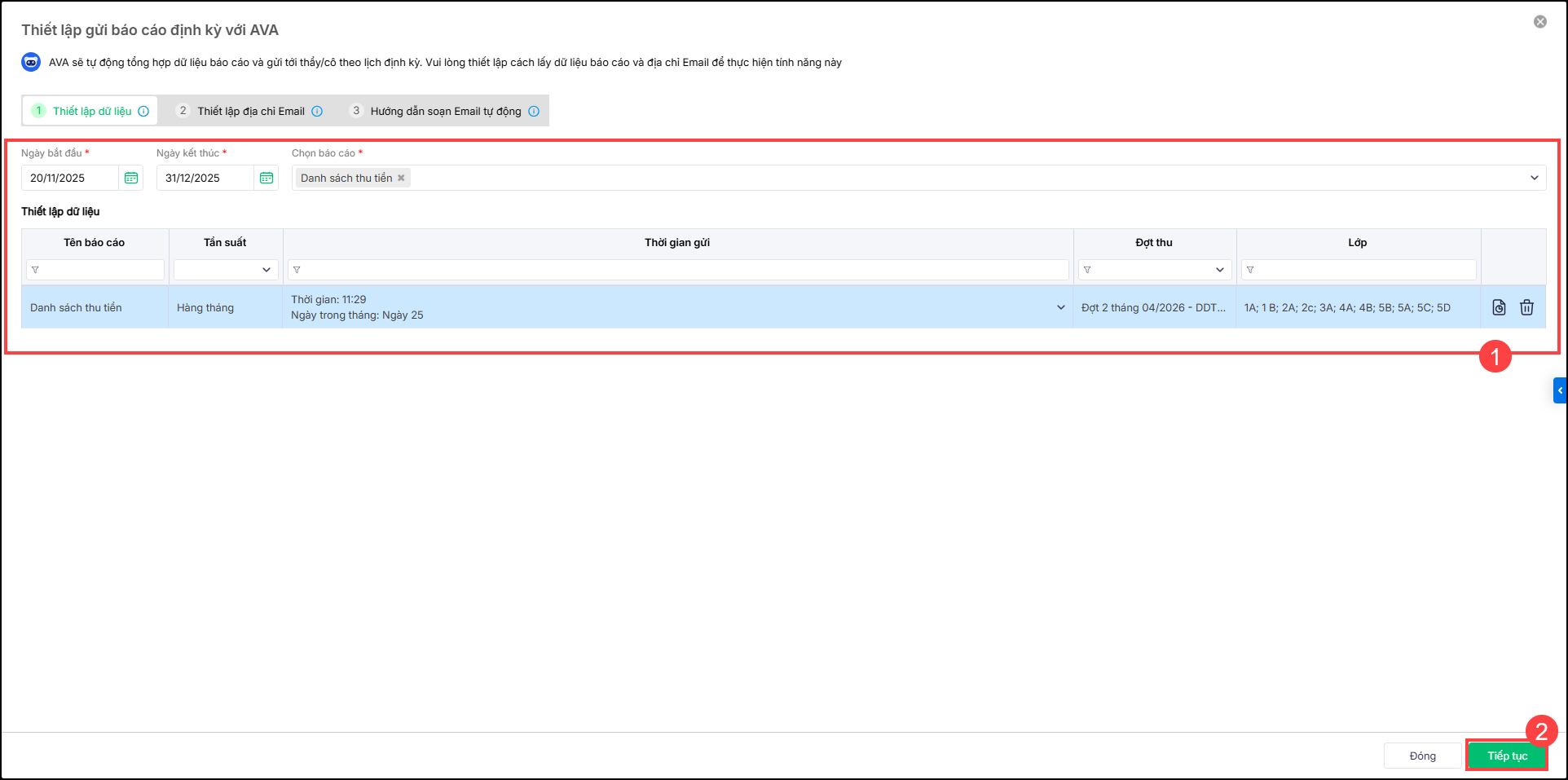 5. [EMIS Khoản thu] Trợ lý MISA AVA hỗ trợ kế toán gửi báo cáo thu tiền định kỳ cho các phòng ban liên quan