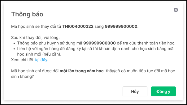 Khi thu tiền nhà trường gửi thông báo thu tiền cho sinh viên trên website gồm thông tin các khoản thu phải nộp, tổng tiền và cú pháp chuyển khoản (nếu học sinh chuyển khoản). Ví dụ: Cú pháp là: <Tên học sinh><Mã thanh toán> chuyển khoản HKI năm học 2025-2026. Sau khi nhận được số tiền thanh toán của học sinh, nhà trường sẽ đối soát giao dịch dựa vào mã thanh toán với số tiền còn nợ của học sinh để gạch nợ.