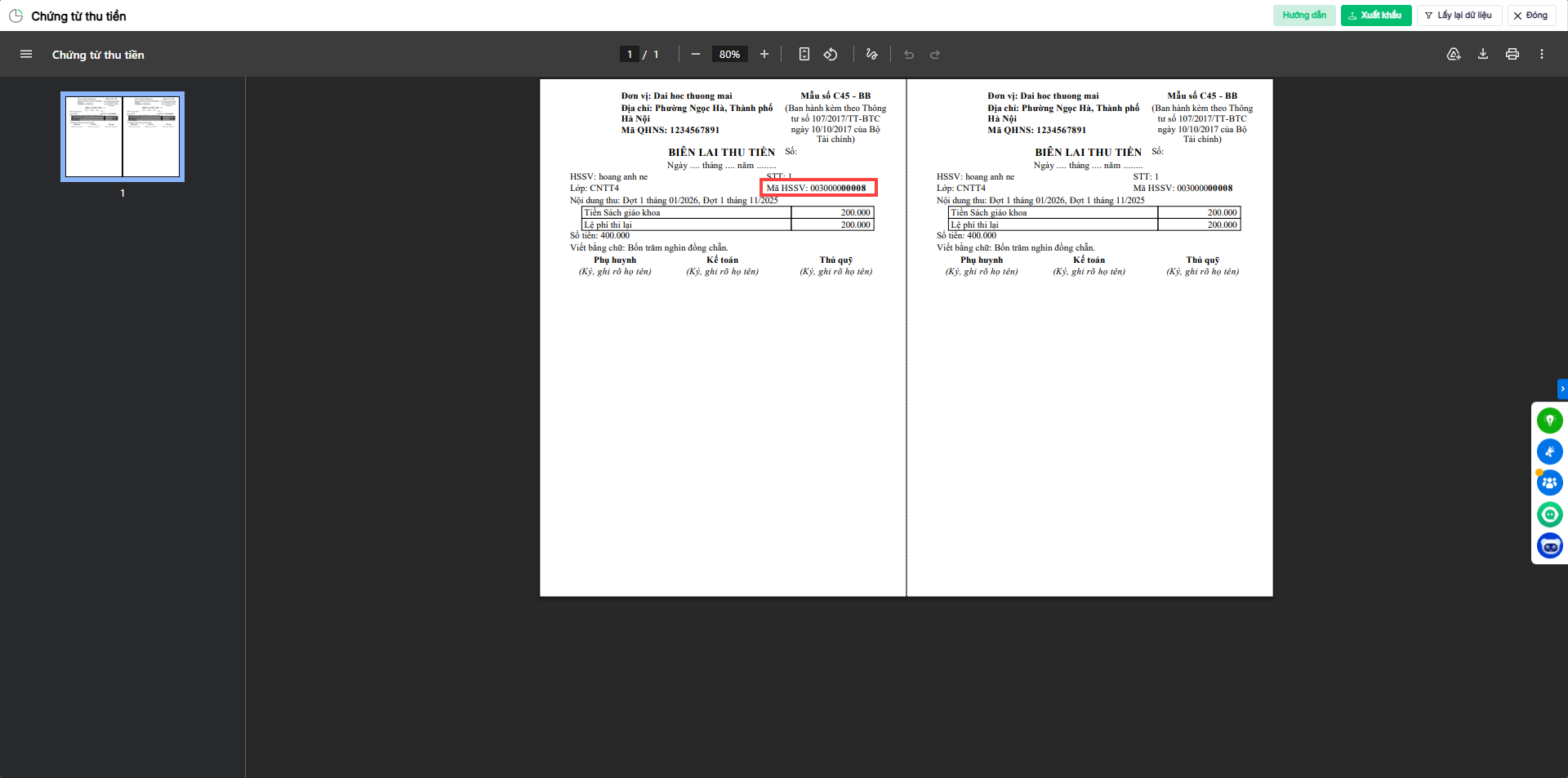 - Từ phiên bản R214: Mã thanh toán, mã học sinh được cập nhật theo số định danh cá nhân của HSSV. Và hiển thị trên các báo cáo thu tiền giúp kế toán dễ dàng đối chiếu với file đối soát từ ngân hàng và dễ dàng truyền thông cho sinh viên về cách thanh toán học phí bằng mã thanh toán.