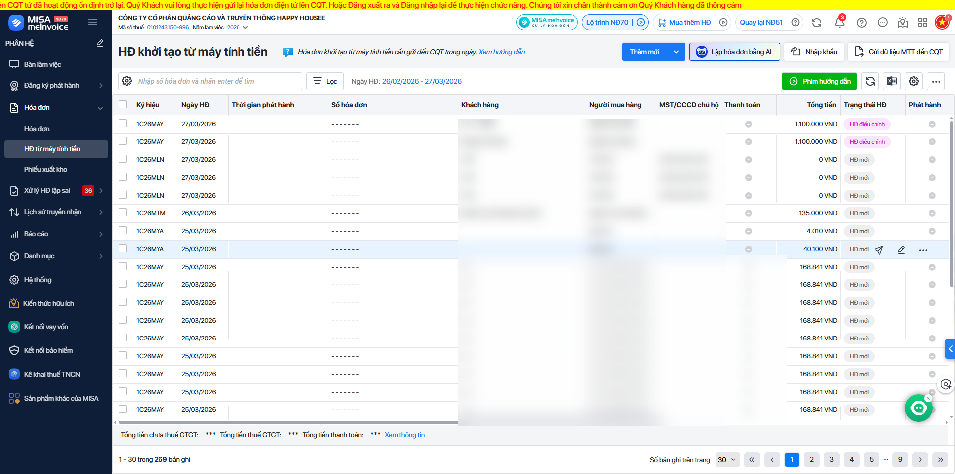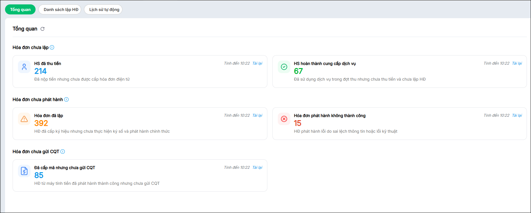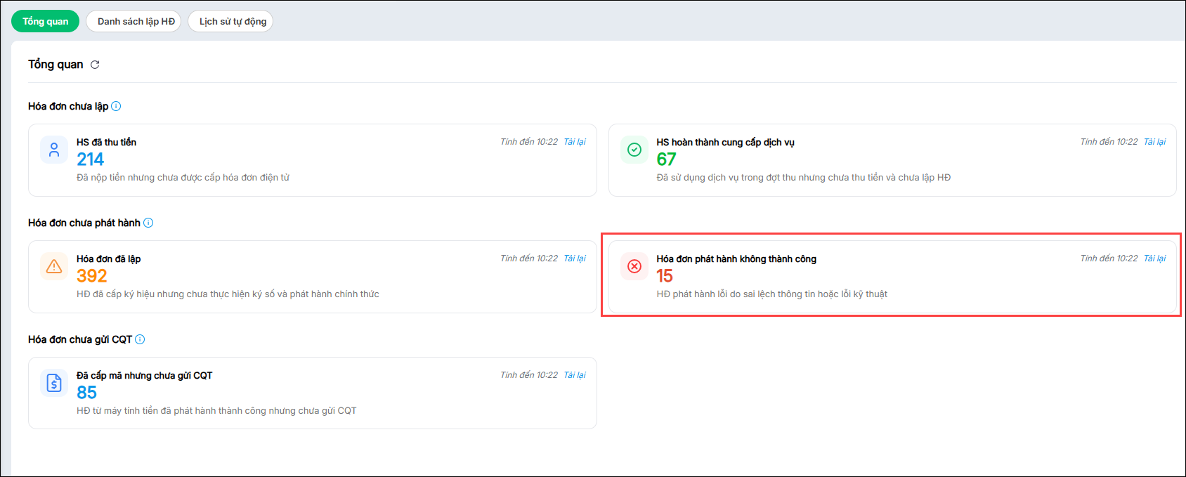 - Hóa đơn phát hành không thành công: Chương trình thống kê số lượng HĐ phát hành lỗi do sai lệch thông tin hoặc lỗi kỹ thuật.