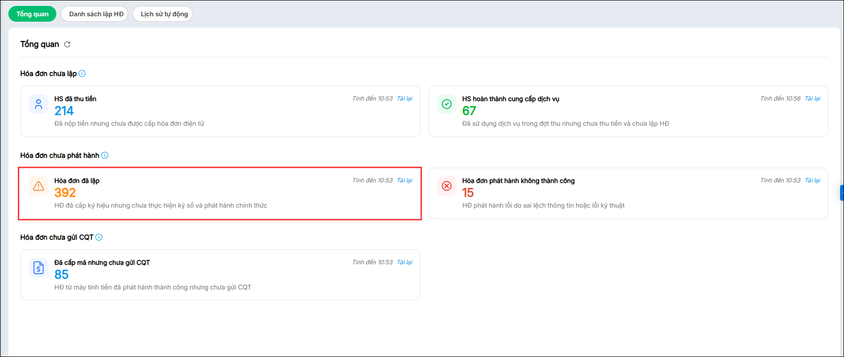 - Hóa đơn chưa lập: Các trường hợp hóa đơn đủ điều kiện nhưng chưa khởi tạo hóa đơn