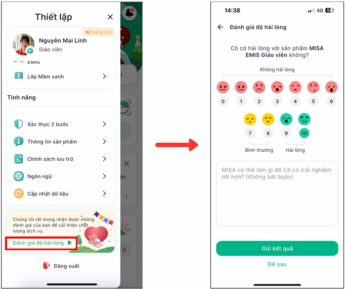 - Gửi Đánh giá độ hài lòng.