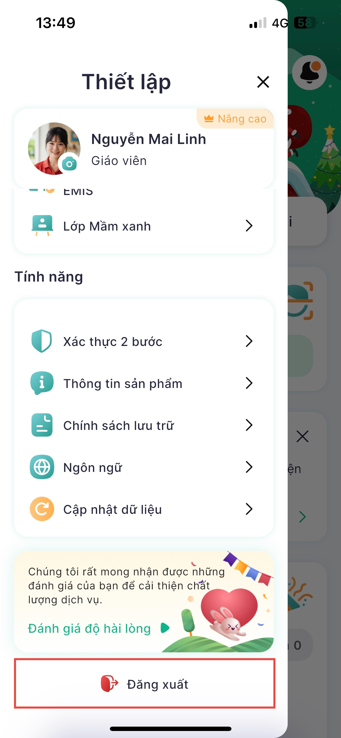 - Nhấn Đăng xuất.