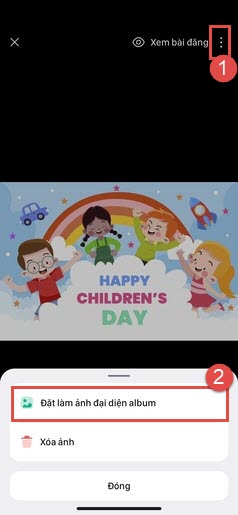 - Đặt ảnh đại diện: Anh/Chị có thể mở một ảnh và chọn “Đặt làm ảnh đại diện album” để chọn ảnh bìa đẹp nhất cho album.