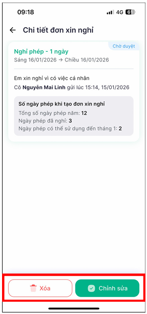 - Với đơn “Chờ duyệt”, Anh/Chị có thể Sửa hoặc Xóa.