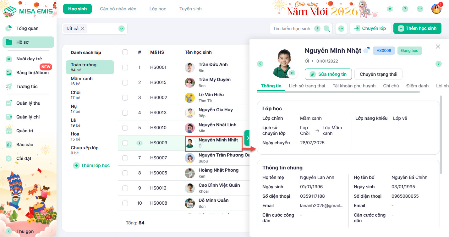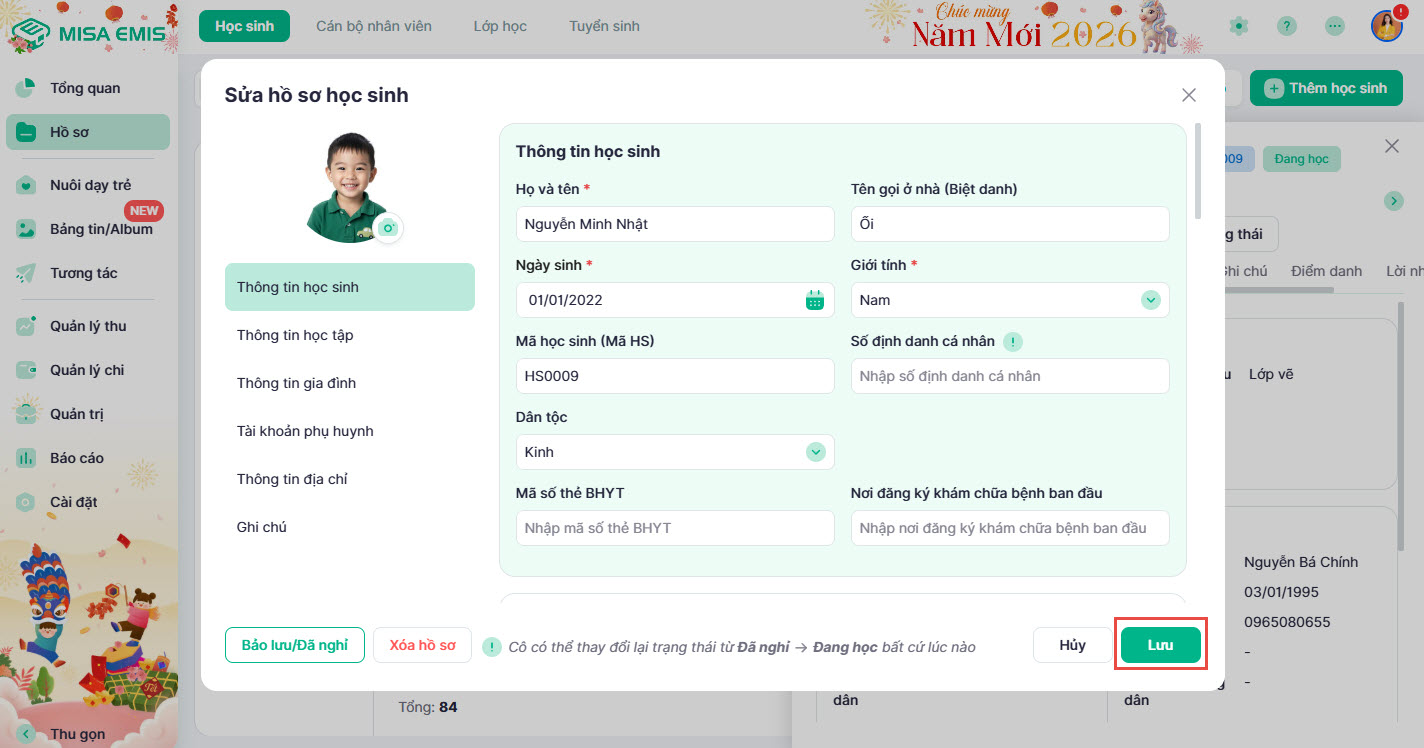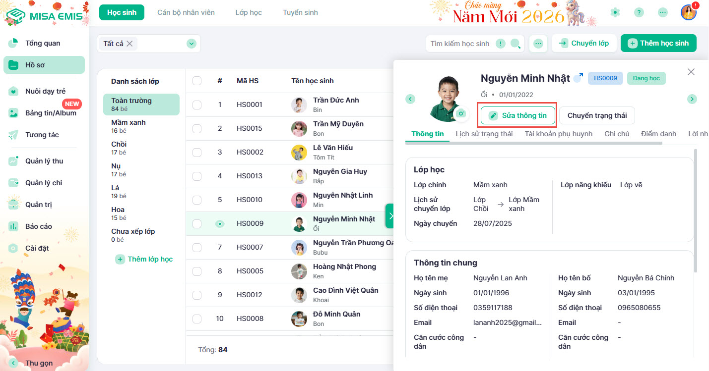 3. Xem và chỉnh sửa thông tin hồ sơ học sinh