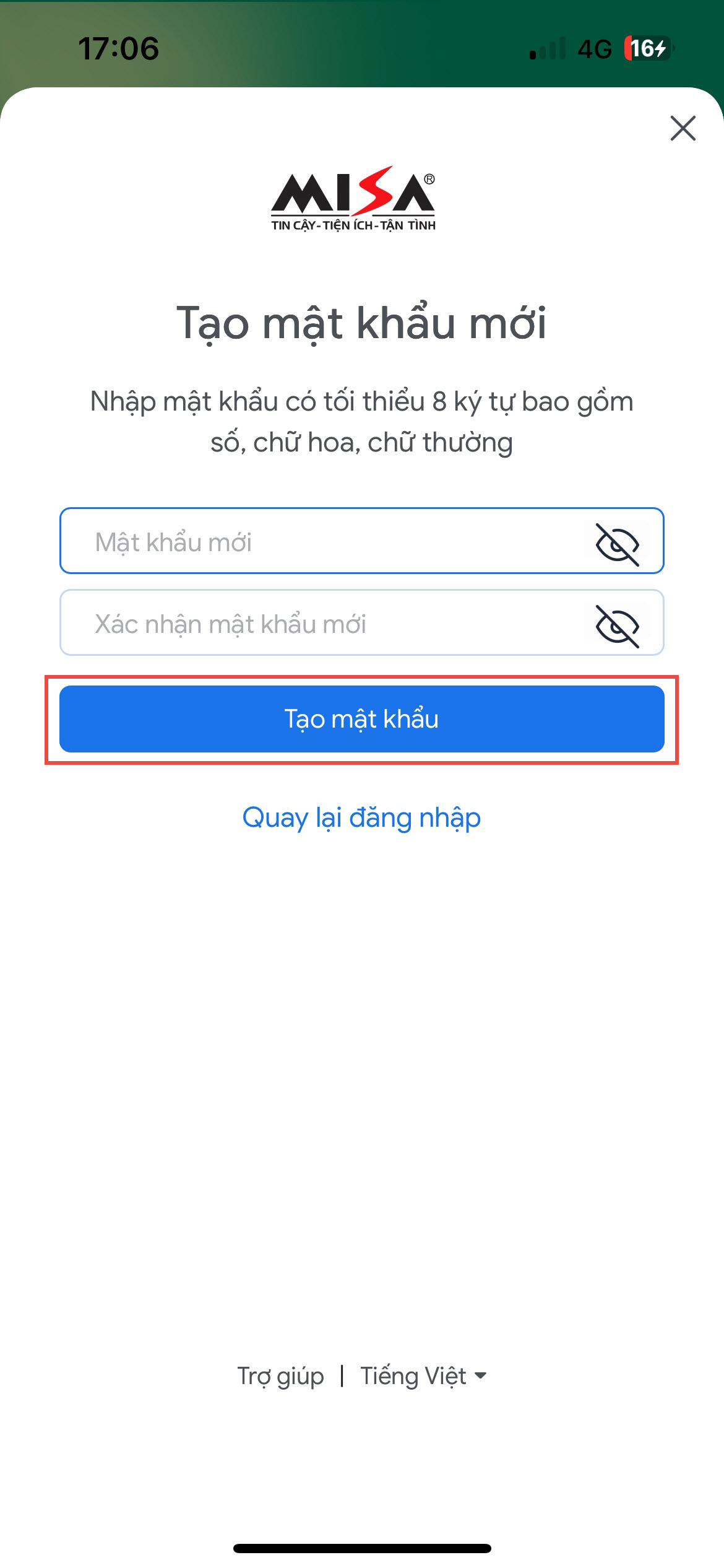 - Nhập mật khẩu mới mà Anh/Chị muốn sử dụng.